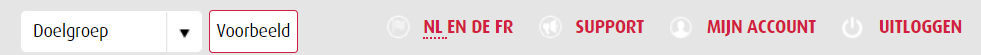 Onderstaande onderdelen vind je bovenaan op elke pagina in de beheeromgeving. (Talen afhankelijk van wat bij jou is ingesteld).