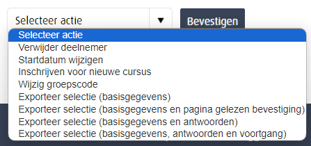 Deze acties kun je toepassen op een selectie van deelnemers.