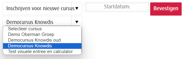 Toevoegen nieuwe cursus: kies welke cursus nieuw aan deze deelnemer moet worden toegewezen en vergeet niet de startdatum te kiezen!