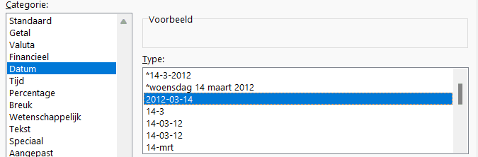 Dan selecteer je alle startdatum velden, klikt via de rechtermuisknop op Eigenschappen en kiest voor Datumnotatie 2024-03-14 zoals je dat in de afbeelding ziet.