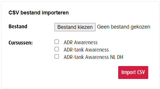 Dan kun je het bestand importeren. De startdatums worden al meegenomen in het importbestand, dus hier hoef je alleen nog de cursussen aan te vinken.
