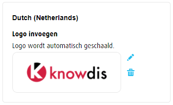 Als het logo te zien is in het kader klik dan op Opslaan onderaan de pagina in Knowdis. Het logo verschijnt in de bovenbalk.