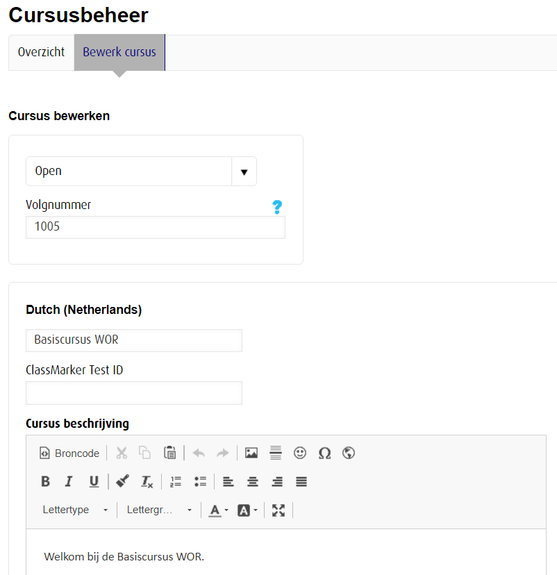 In het overzicht kun je een bestaande cursus bewerken, via het blauwe potloodje kom je in onderstaand scherm.