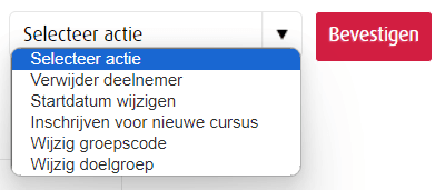 Je kunt hier een enkele deelnemer nog bewerken, of een collectieve actie uitvoeren op al deze deelnemers of op een selectie door te filteren op deze regels.